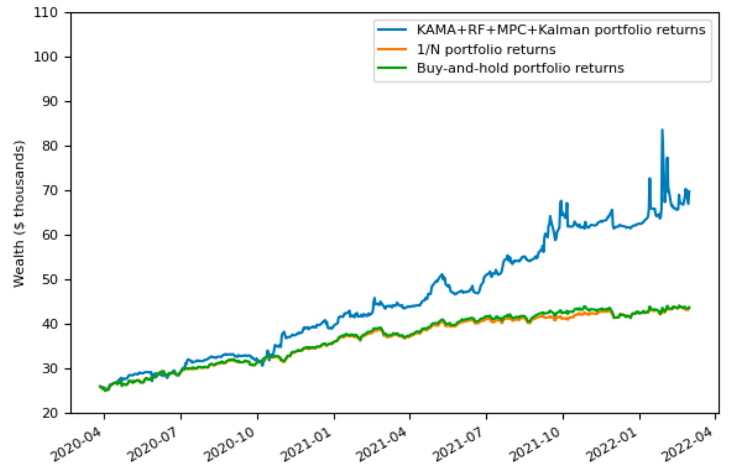 I can show you the results I got back in my PhD; however, here a lot of work was done by my model that predicted returns plus the trick with lagged Kalman Filter I did to potentially correct wrong estimates